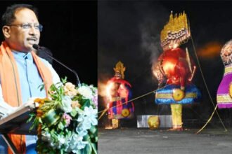 सीएम साय ने 101 फिट ऊंचे रावण के पुतले का किया दहन