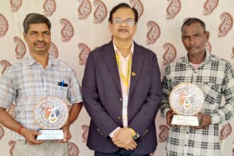केंद्रीय मंत्री ने गणेशराम सिदार, संतोष देवांगन को बेस्ट एचिवर पुरस्कार से किया सम्मानित