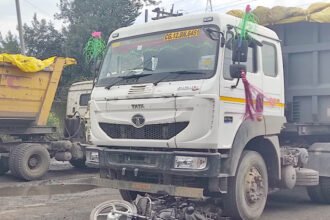 ट्रेलर की चपेट में आकर बाइक चकनाचूर