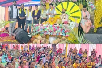 नवापारा में कथा व्यास दीपक कृष्ण शास्त्री की सुमधुर वाणी में बह रही भागवत कथा की बयार