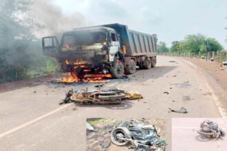 आरंग। हाईवा की टक्कर से बाइक से स्कूल जा रहे…
