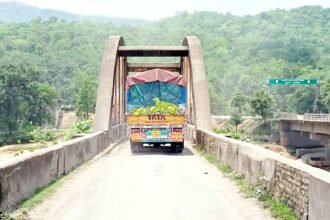 नए की बजाय पुराने पुल पर दौड़ रहे भारी वाहन