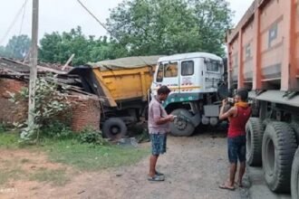 कोयले से भरी दो ट्रेलर आपस में टकराकर घर में जा घुसी