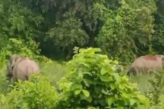 एनटीपीसी क्षेत्र छपोरा के खेतों में देखे गए हाथियों के पांव के निशान