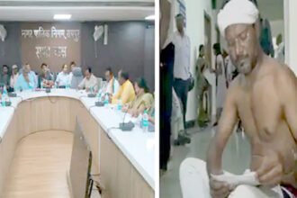 कपड़े उतारकर रायपुर निगम के बाहर बैठा कांग्रेस पार्षद