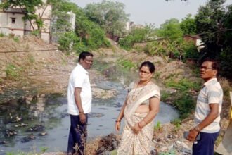 नाला सफाई का जायजा लेने पहुंचे महापौर व कमिश्नर