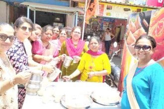 जैन महिला मण्डल ने केवड़ाबाड़ी बस स्टैण्ड में यात्रियों को पिलाई छाछ