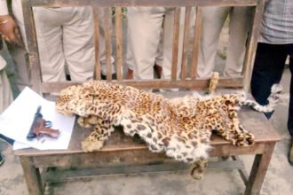 शहर के एक मकान में तेंदुआ खाल के अलावा एयरगन बरामद