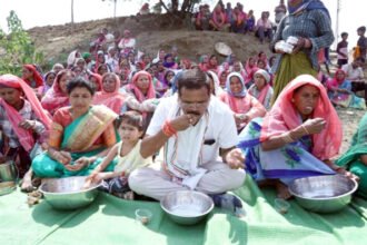 श्रमिक दिवस पर श्रमिकों ने राजेंद्र साहू को अपने बीच पाया तो खुशी से झूम उठे एक साथ बैठकर खाय
