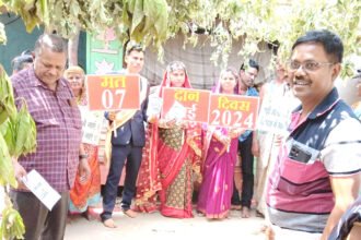 मंडप के नीचे वर-वधु ने ली मतदान की शपथ