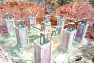 नल जल योजना में खराब क्वालिटी के रेत और कमजोर छड़ से काम करा रहा ठेकेदार