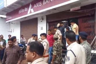 डकैतों को लेकर एक्सिस बैंक पहुंची पुलिस
