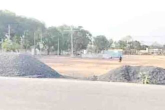 सडक़ किनारे व खेल मैदान में डम्प कर रखे गिट्टी, दुर्घटना को दे रहा निमंत्रण