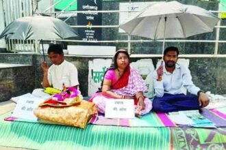न्याय की गुहार लगने गांधी प्रतिमा के पास कड़ी धूप में बैठा रहा परिवार