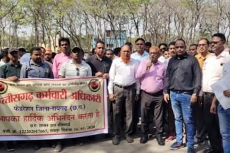 कर्मचारी हितों पर ‘मोदी की गारंटी’ के अमल को लेकर फेडरेशन रायगढ़ ने निकाली रैली,किया प्रदर्शन,