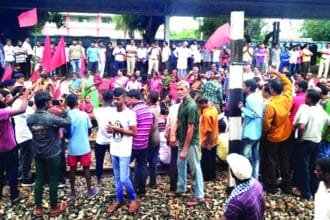 ट्रेनों की स्टापेज को लेकर हिमगीर में हुआ रेल रोको आंदोलन