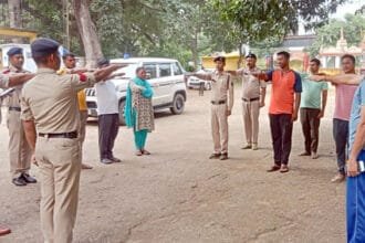 कार्यस्थल को स्वच्छ बनाए रखने पुलिसकर्मियों ने किया श्रमदान
