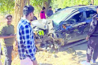 कार पेड़ से टकराई, व्यापारी समेत 3 गंभीर घायल