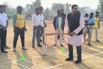 उमेश पटेल ने मैदान में उतर कर की बैटिंग, खिलाडिय़ों का बढ़ाया हौसला